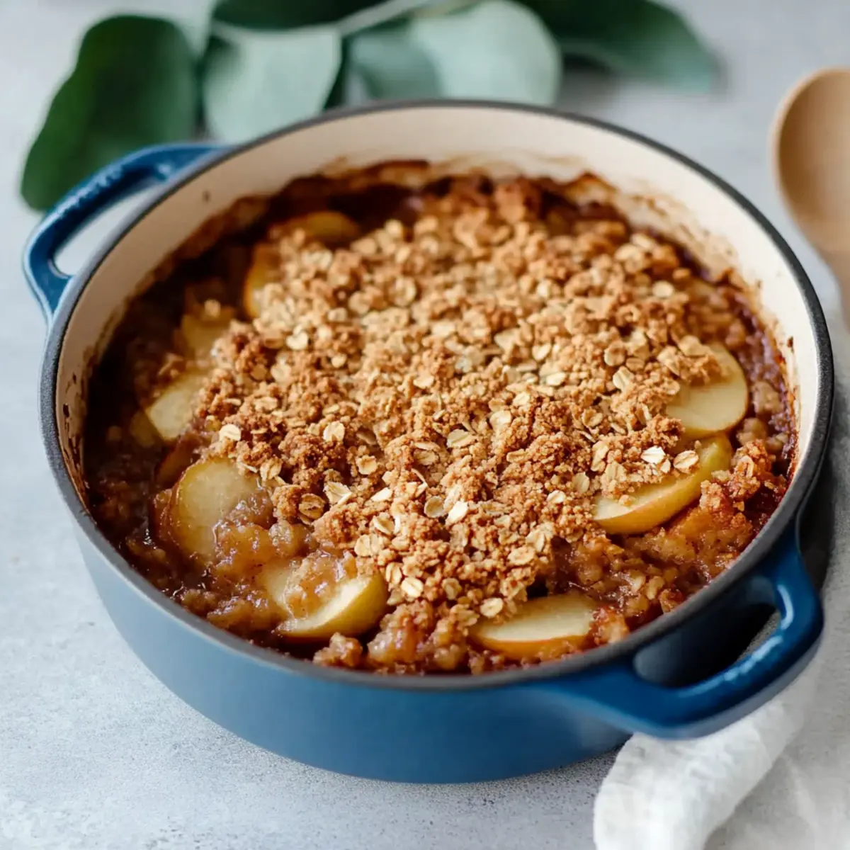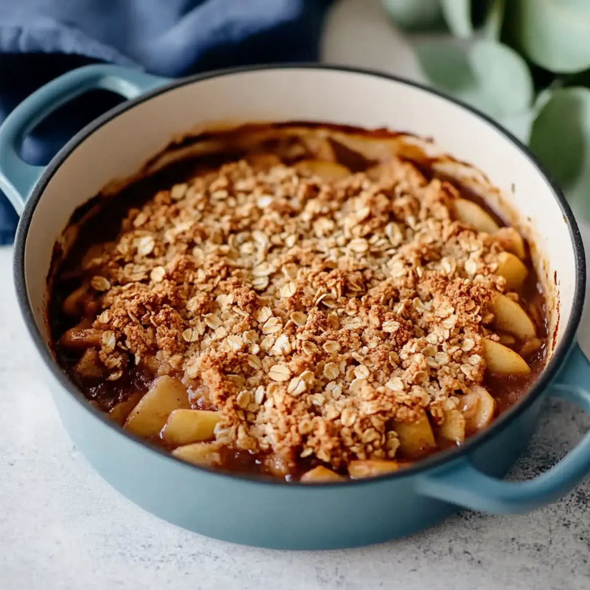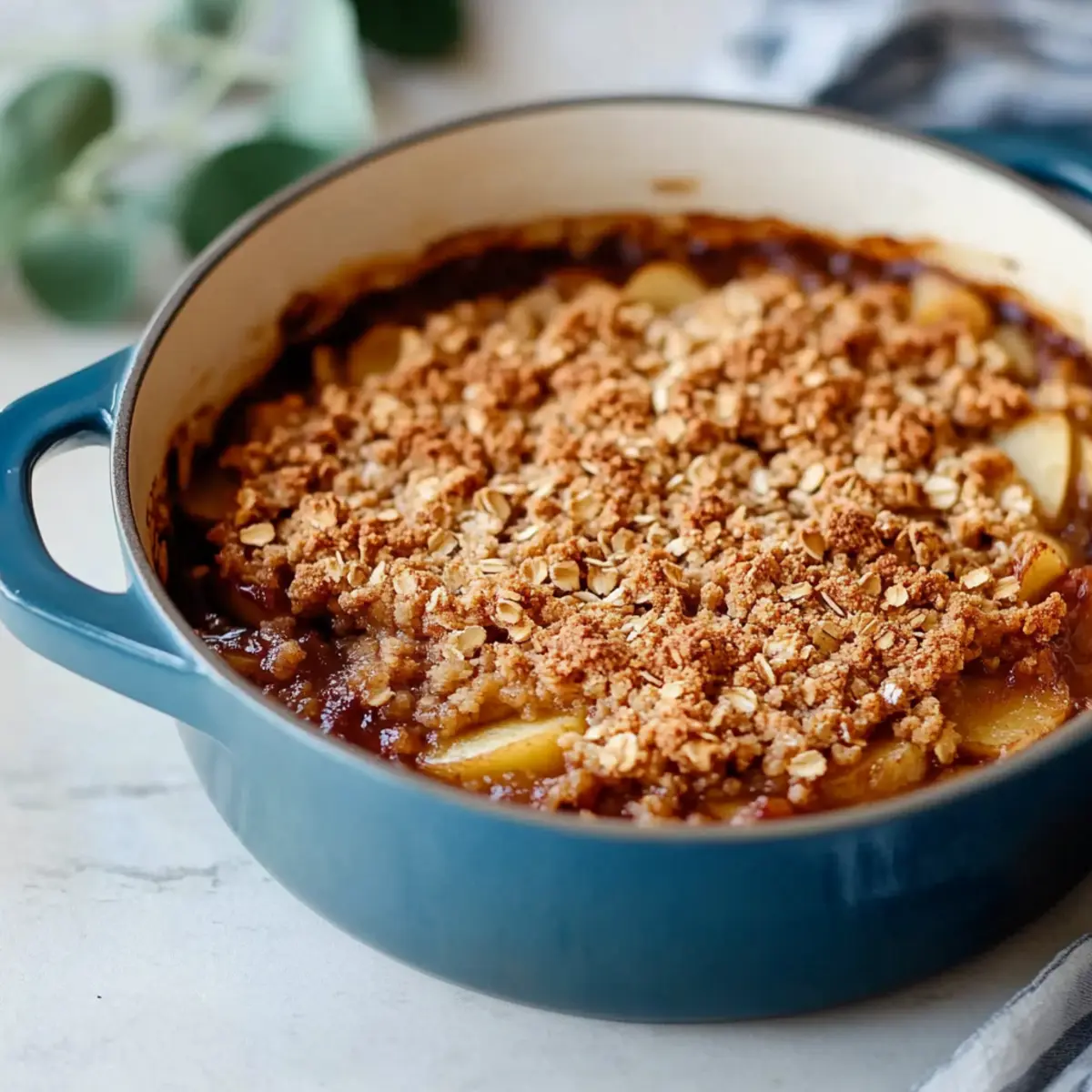 These Amazing Dutch Oven Oat Apple Crisp preparations are perfect for meal prep enthusiasts! You can prepare the apple filling up to 24 hours in advance by mixing the apples with lemon juice, sugar, flour, and cinnamon, then refrigerate it in an airtight container to keep it fresh and prevent browning. The crumb topping can also be made ahead, stored in the fridge for up to 3 days, allowing the flavors to meld beautifully. When you’re ready to bake, simply assemble the crisp by distributing the topping over the apple mixture and bake as directed. This way, you’ll enjoy a warm, comforting dessert with minimal effort on a busy weeknight!