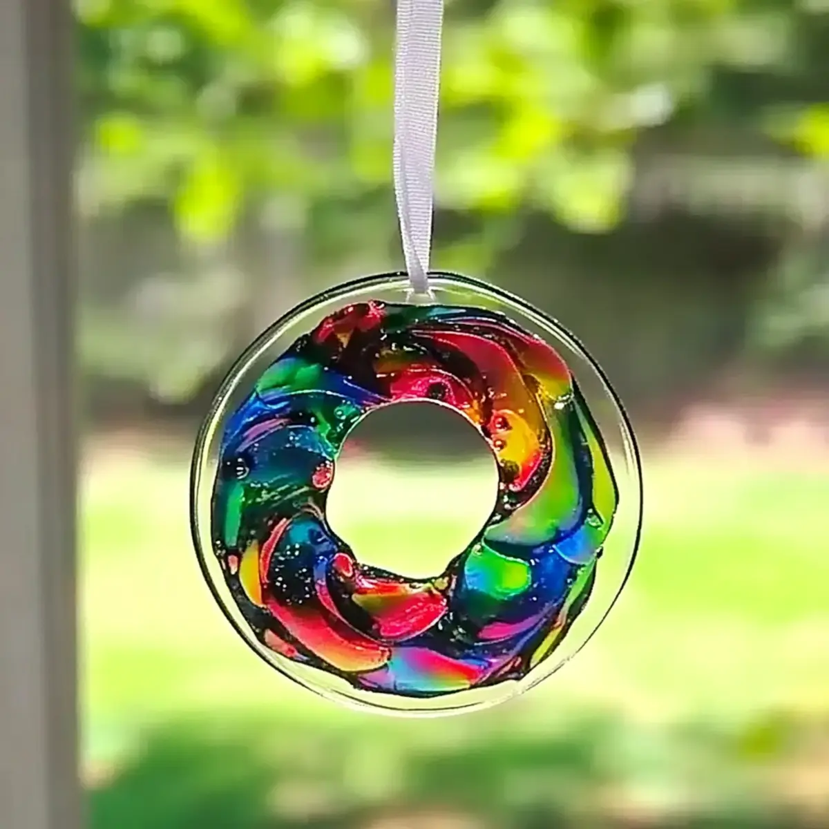 - Once dry, carefully peel off the plastic and display your suncatcher!