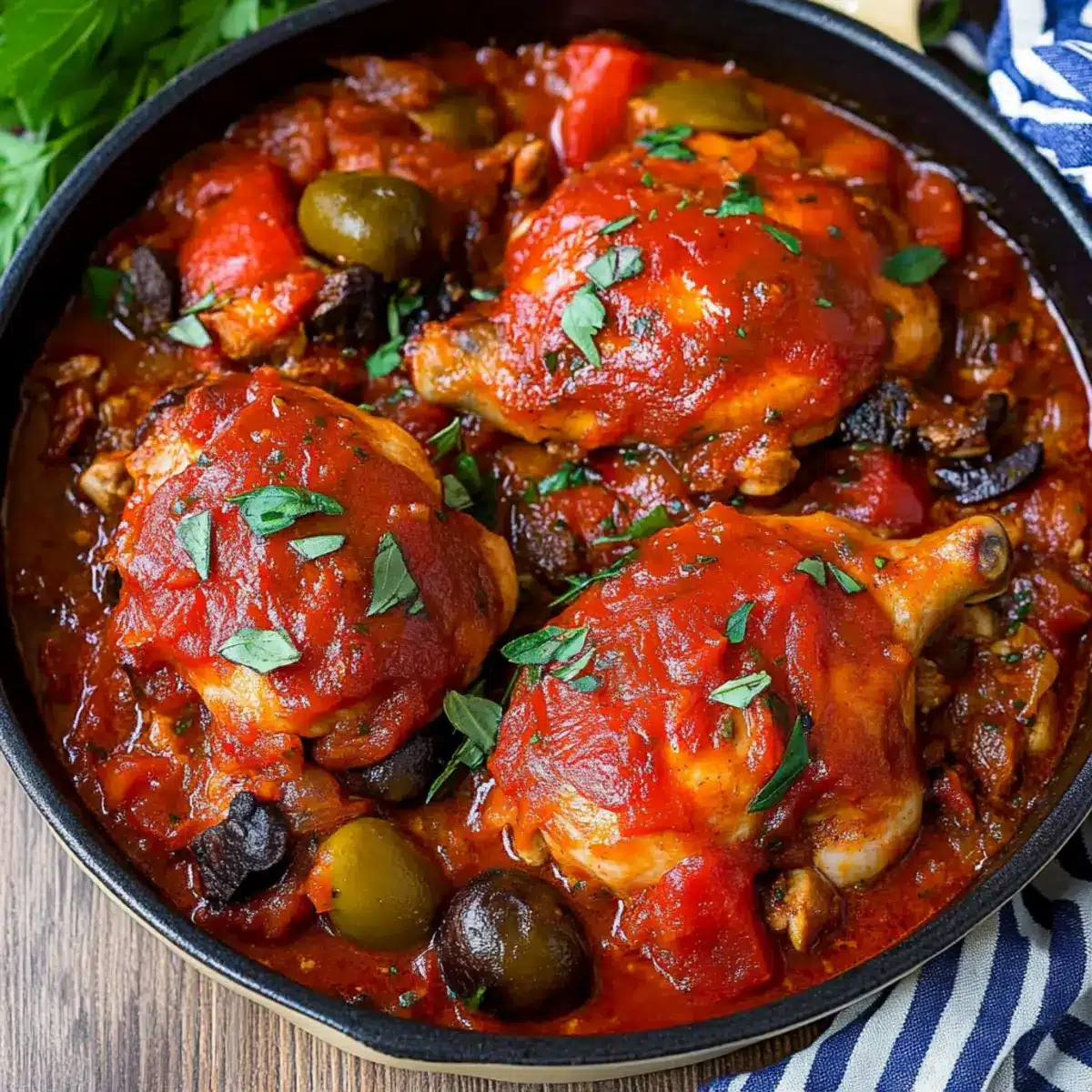 I found this delightful recipe during one of my culinary adventures, searching for a way to reinvent my usual dinner rotation. As the chicken bubbles softly in the sauce, the blend of flavors creates an irresistible symphony that has become a beloved staple in my home. Itโ€™s a dish that not only evokes the essence of family gatherings but also offers the flexibility to adapt to your pantryโ€™s treasures. So, grab your apron and letโ€™s dive into this hearty Chicken Cacciatore, bringing a taste of Italy right to your dining table!