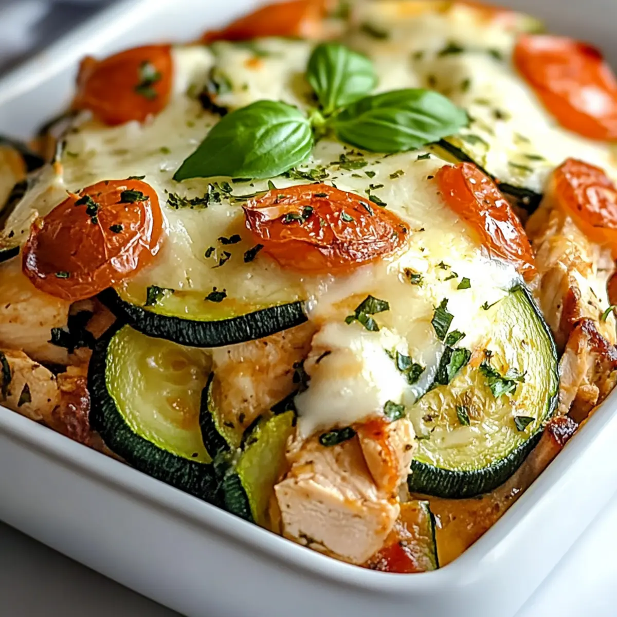 I recommend storing any leftover Chicken Zucchini Bake in an airtight container. It can stay fresh in the fridge for about 3-4 days. To maintain the best texture and flavor, reheat in the oven at 350ยฐF (175ยฐC) for about 15-20 minutes, allowing that cheesy crust to regain its bubbly magic.