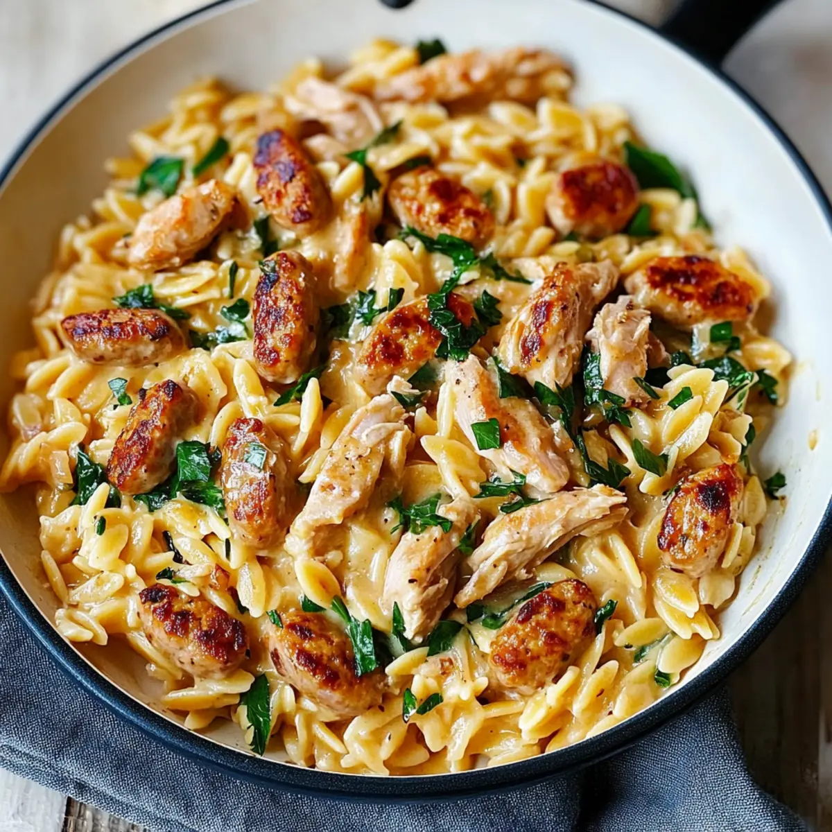 Enjoy this Creamy Chicken Sausage Orzo, a quick, one-pan meal packed with flavor and protein, perfect for busy weeknights.