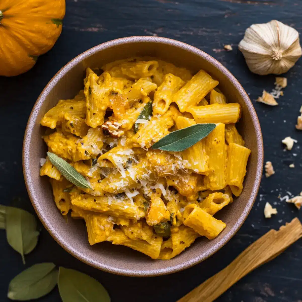 Enjoy the warm and cozy flavors of Creamy Pumpkin and Sage Pasta, perfect for a comforting fall dinner.