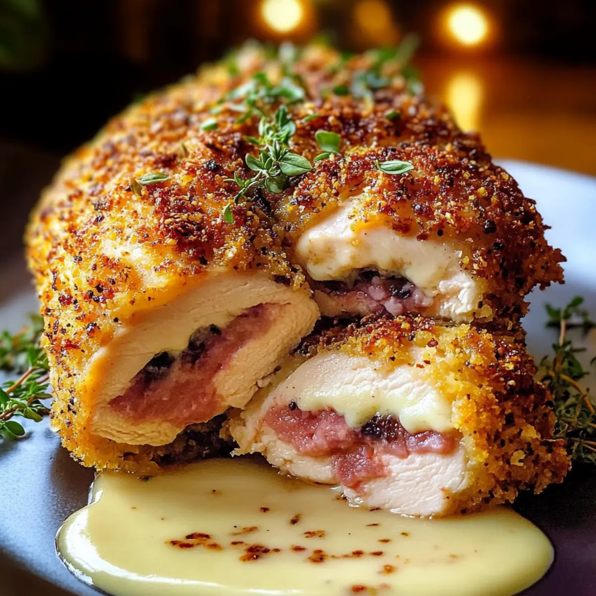 • Spicy Kick: Add crushed red pepper flakes to the breadcrumb mixture for a bit of heat. Just a sprinkle will give your Easy Oven Chicken Cordon Bleu a zesty side!