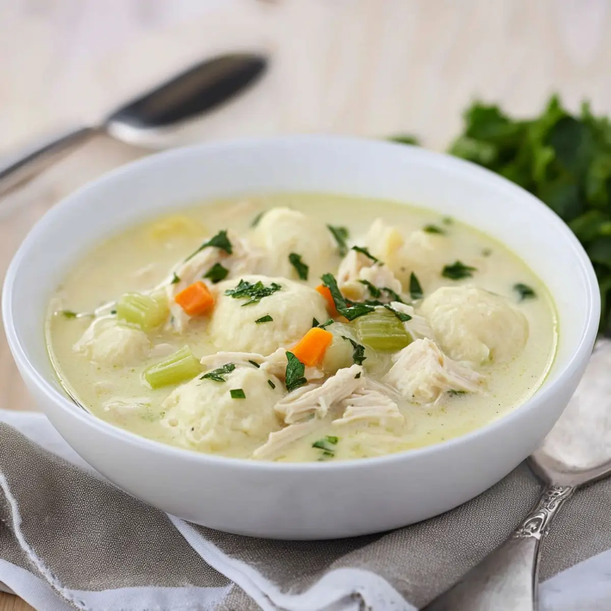 Serve Warm: Ladle the comforting chicken and dumplings into bowls, and garnish with fresh parsley for a pop of color.
