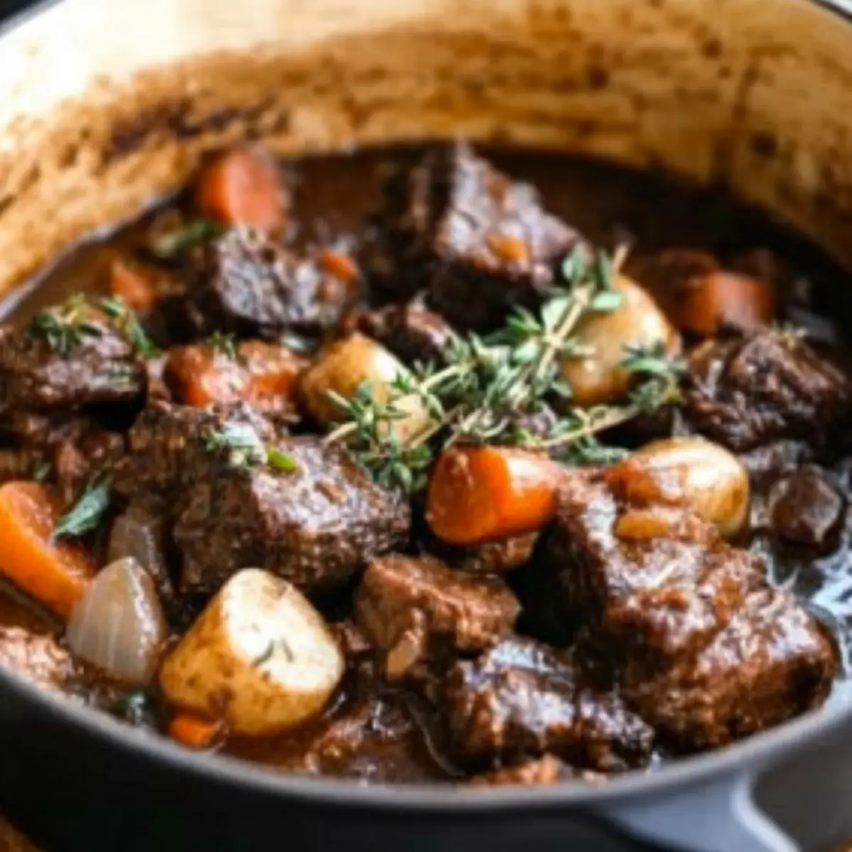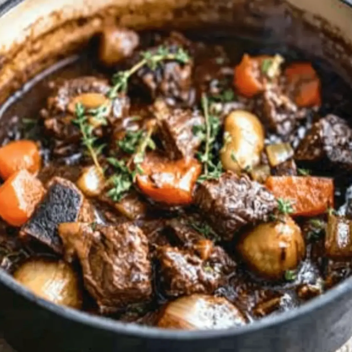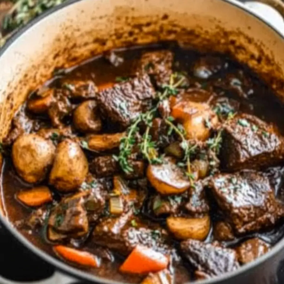 I remember the first time I prepared this dish, letting the rich Burgundy wine work its magic as the beef tenderized and the flavors melded together in my dutch oven. What began as a straightforward stew transformed into a luxurious experience that enveloped my home in comfort. This recipe is wonderfully versatileโideal for a casual family dinner or impressing those special guests. Each bite is a delightful reminder that comfort food can indeed be refined without losing its heart. Letโs dive into the details of crafting this slow-cooked masterpiece that promises to create lasting memories.