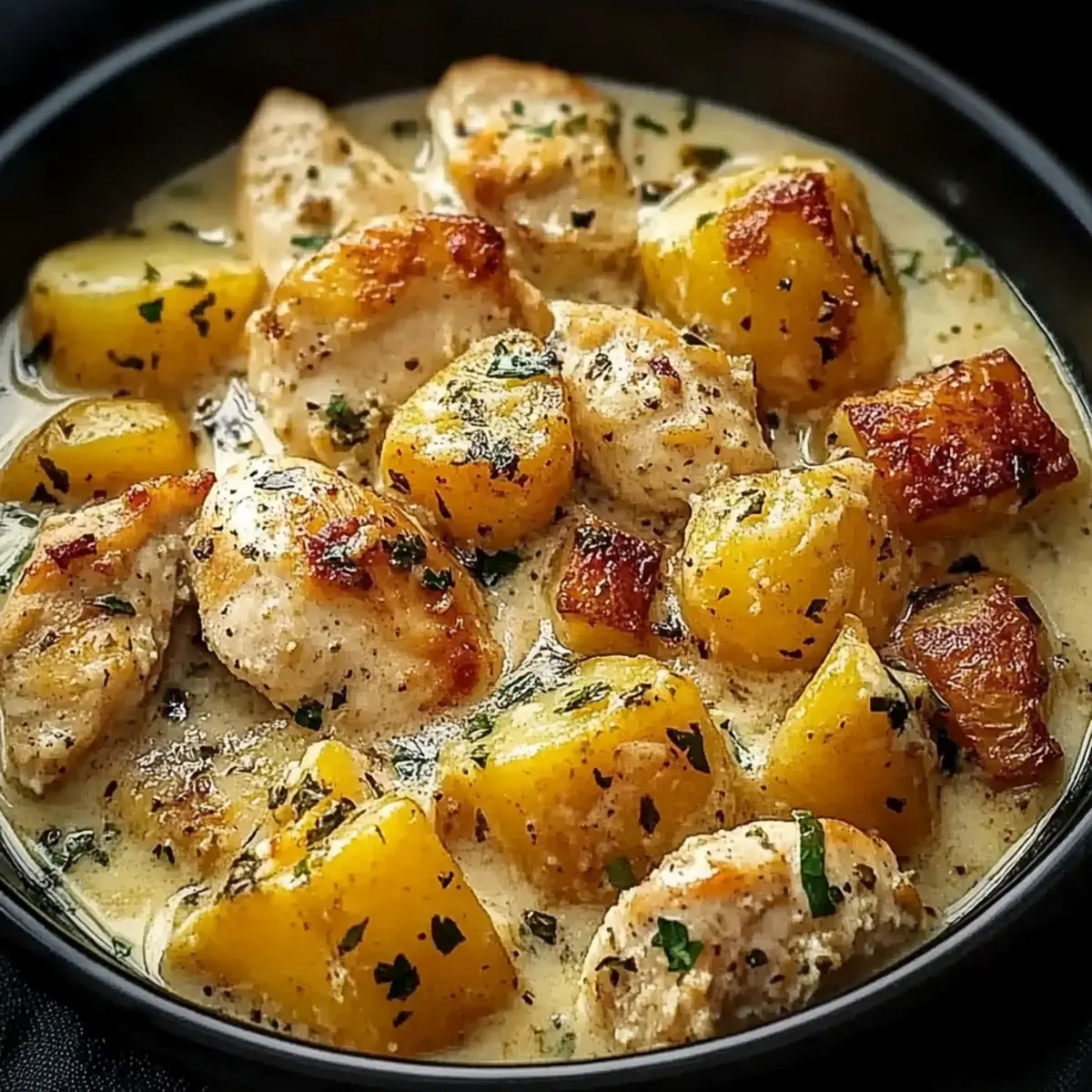 7. Serve with Love: Enjoy your creamy Garlic Parmesan Chicken and Potatoes warm, served over rice or pasta for a complete and satisfying meal.