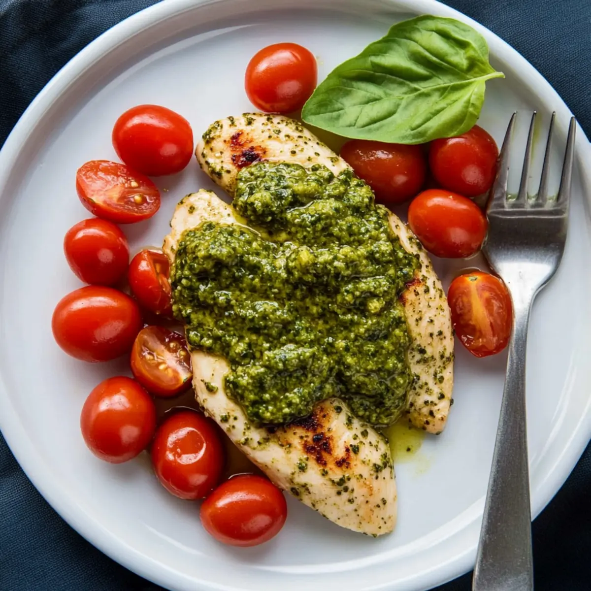Keto Pesto Chicken with Cherry Tomatoes – Fresh & Fast Dinner Delight