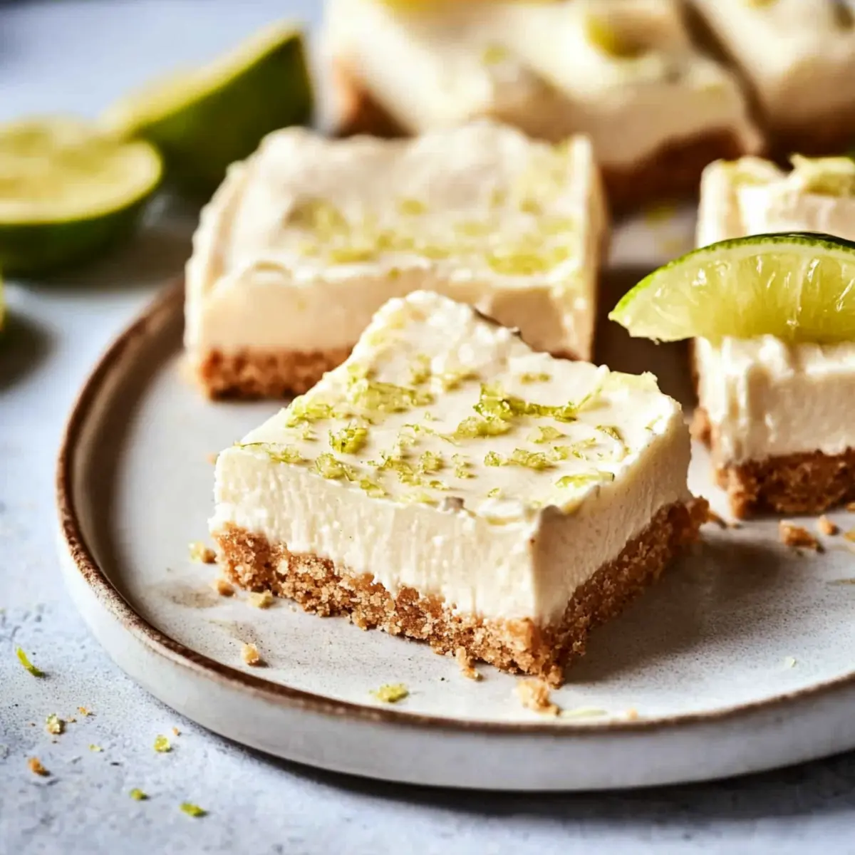 These Key Lime Bars are perfect for meal prep enthusiasts looking to save time on busy weeknights! You can prepare the graham cracker crust up to 24 hours in advance; just keep it tightly wrapped in plastic to maintain its crunch. The filling can also be made a day ahead; simply whisk together the ingredients and refrigerate until youโre ready to bake. Once baked, allow the bars to cool and chill them in the refrigerator for up to 3 days before serving. For the best taste, top them with whipped cream just before enjoying. This way, your Key Lime Bars will be just as delicious and refreshing when itโs time to serve!