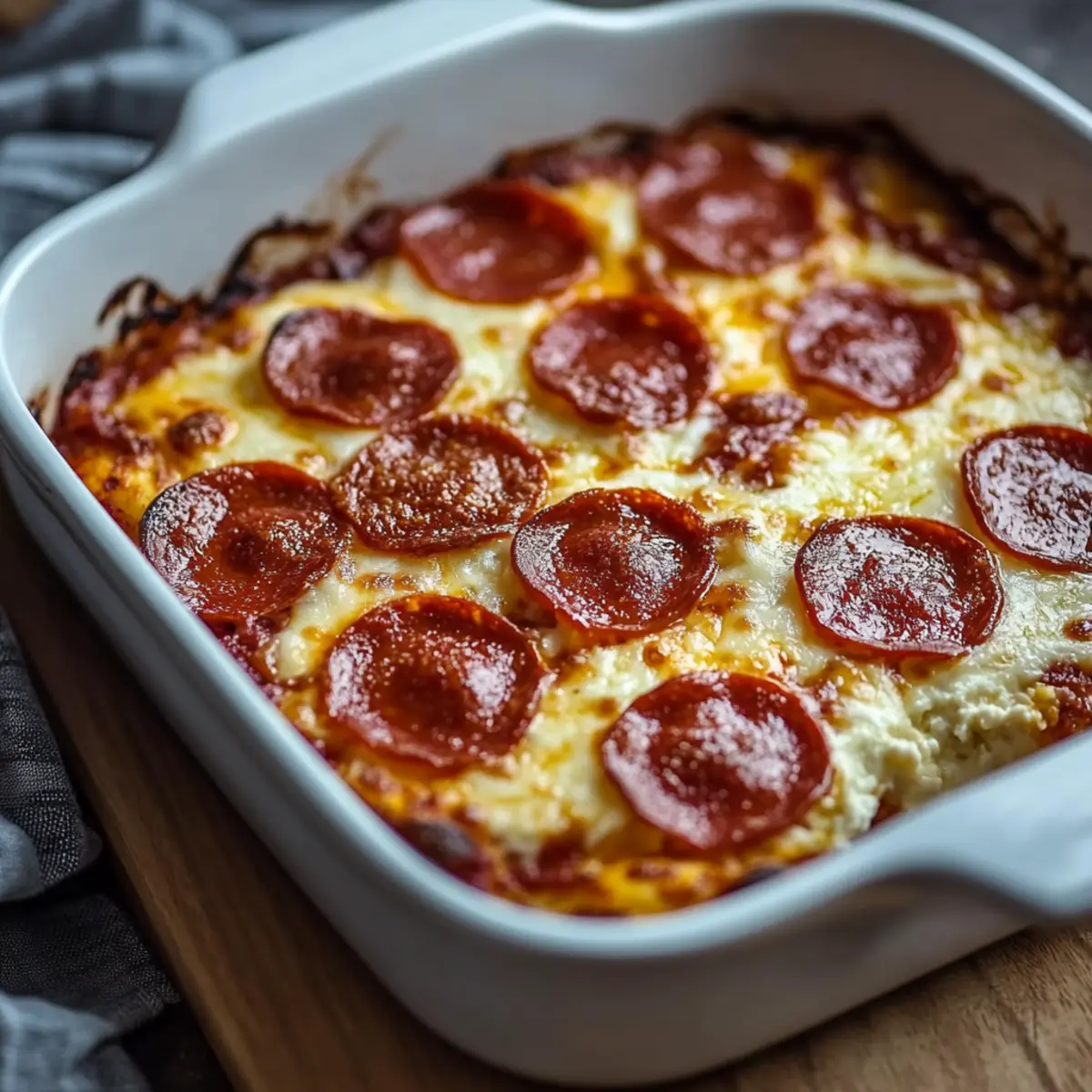 This dish takes just minutes to prep, making it a go-to for meal-prepping or busy weeknights. With its low-carb credentials, it’s destined to become a family favorite without anyone feeling deprived. Plus, itโ€™s versatile enough to cater to picky eatersโ€”whether you swap in veggies for the pepperoni or select your favorite cheeses. So, roll up your sleeves and join me in bringing a slice of joy back to homemade dinners with this easy and delightful recipe!