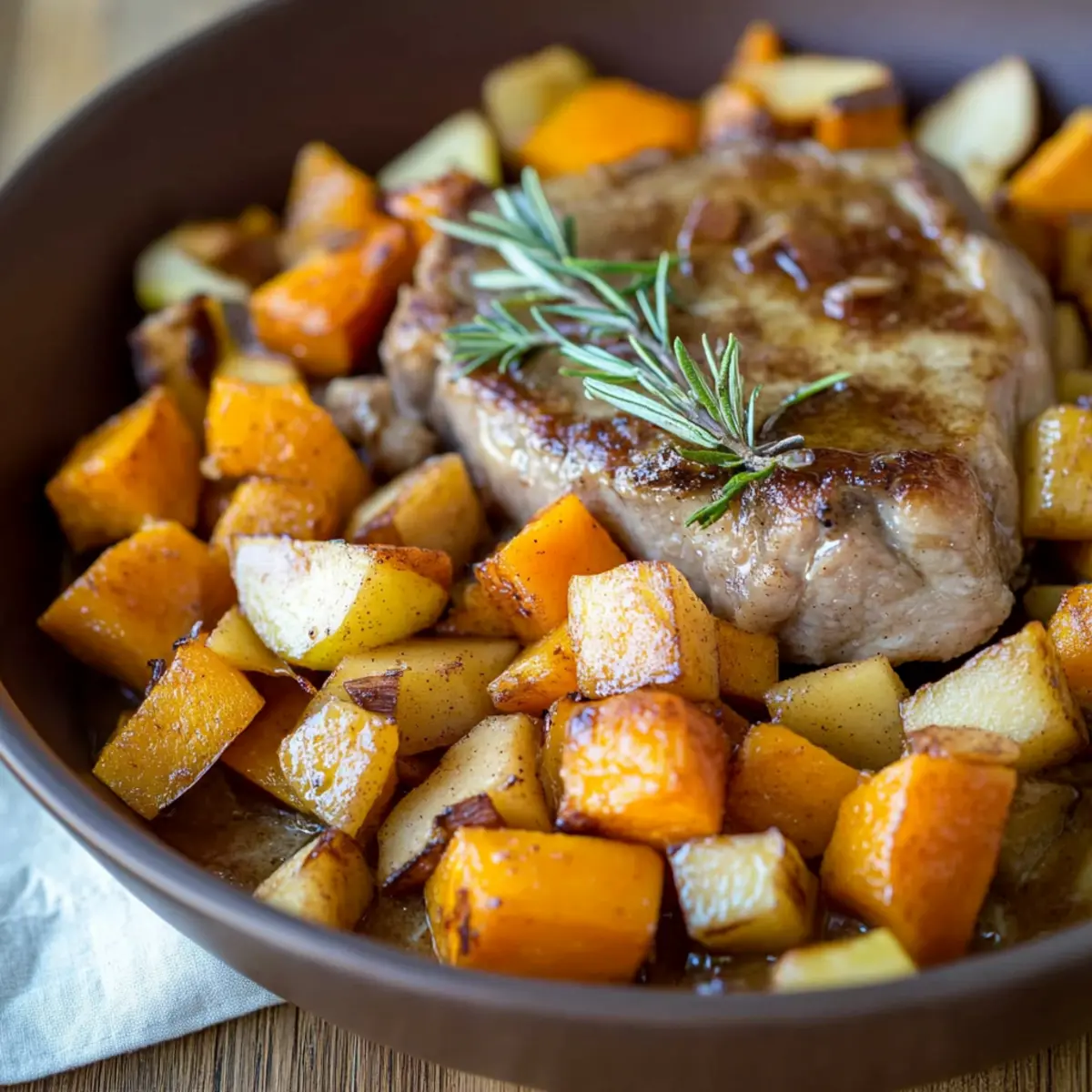A delightful one-skillet meal featuring savory pork, warm cinnamon apples, and creamy butternut squash.