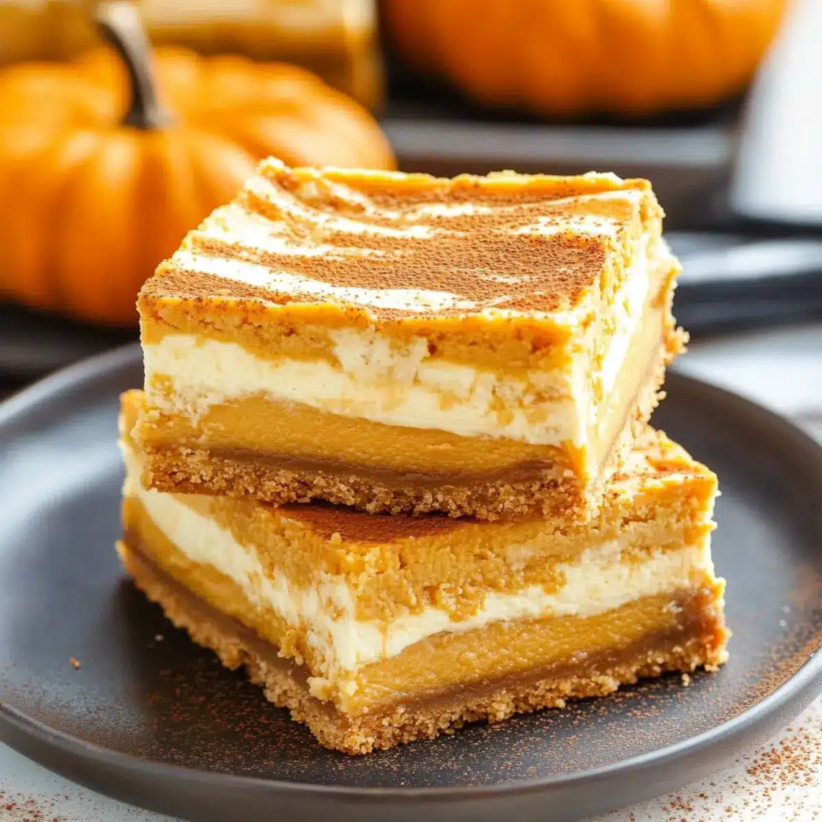 Imagine cutting into a slice that reveals swirls of rich cheesecake nestled atop a buttery graham cracker crust. With just the right amount of sweetness and a hint of fall spices, these bars are not only easy to whip together, but they also make for an impressive centerpiece at any gathering. Whether youโre hosting a festive get-together, or simply treating yourself after a long week, these bars are the answer to all your autumn dessert dreams. So, letโs gather our ingredients and dive into this delightful recipe that will surely become a family favorite!