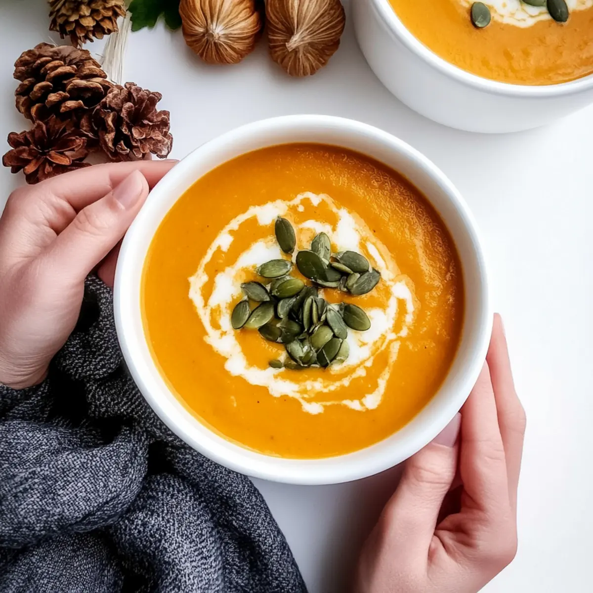 Serve: Dish up the soup hot, optionally garnishing each bowl with a drizzle of coconut milk and a sprinkle of roasted pepitas for added texture and flavor.