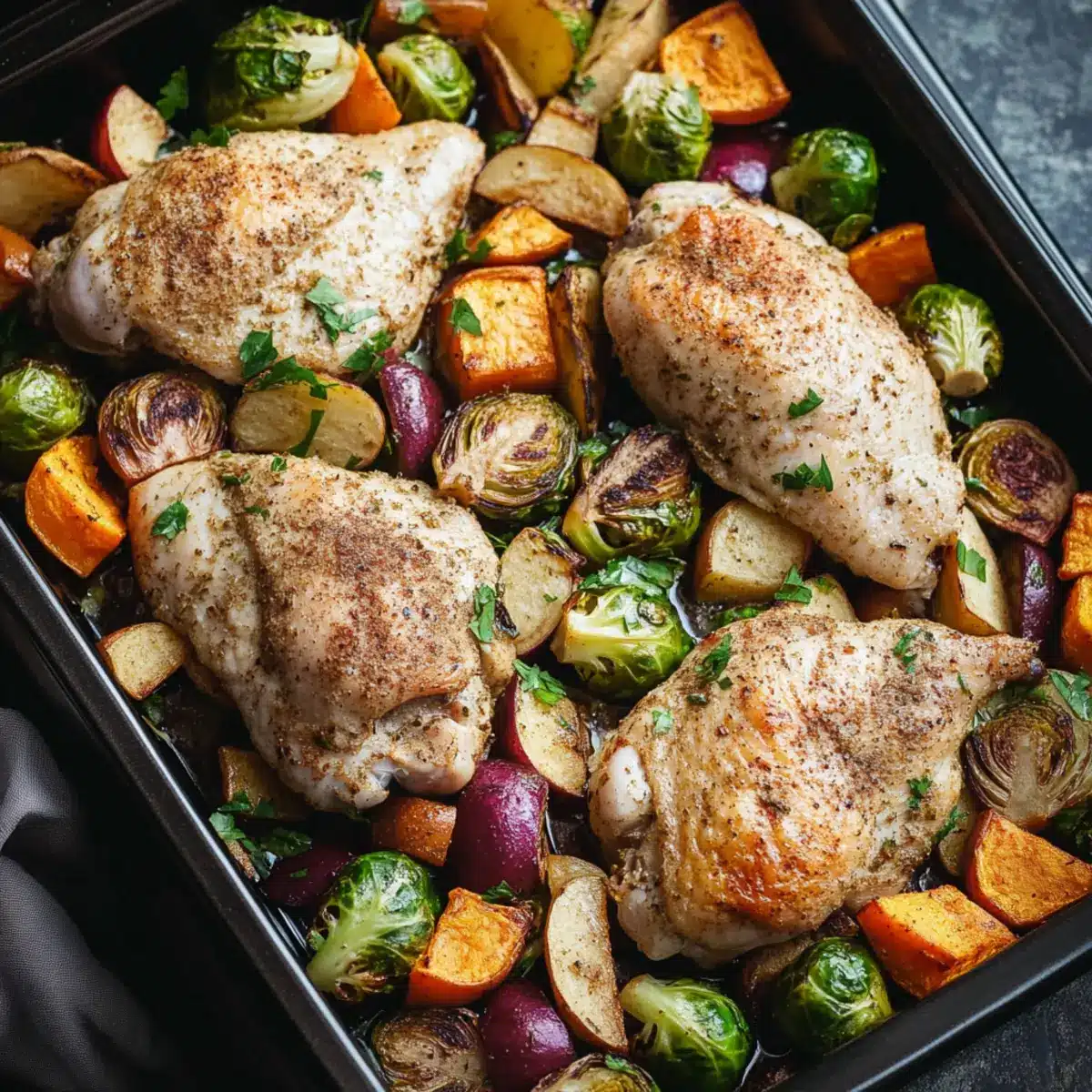 Impressively easy to throw together, this healthy recipe is perfect for anyone looking to break free from the fast-food routine without sacrificing taste. With tender chicken marinated in a rich blend of spices, crisp Brussels sprouts, caramelized sweet potatoes, and the natural sweetness of apples, it’s a complete meal on one sheet pan. Plus, itโs Whole30-compliant, gluten-free, and packed with protein, making it a wonderful choice for both busy weeknights and healthy family dinners. Join me as we dive into this deliciously satisfying recipe that transforms simple ingredients into a spectacular feast!