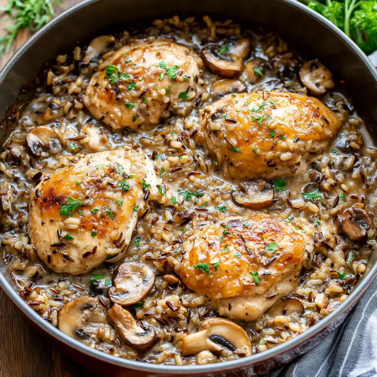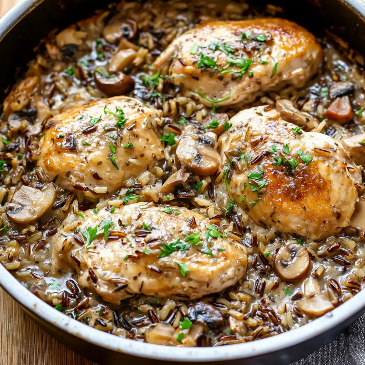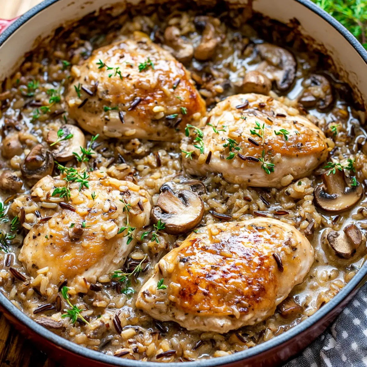 Creamy Tender Chicken Wild Rice Casserole with Mushrooms