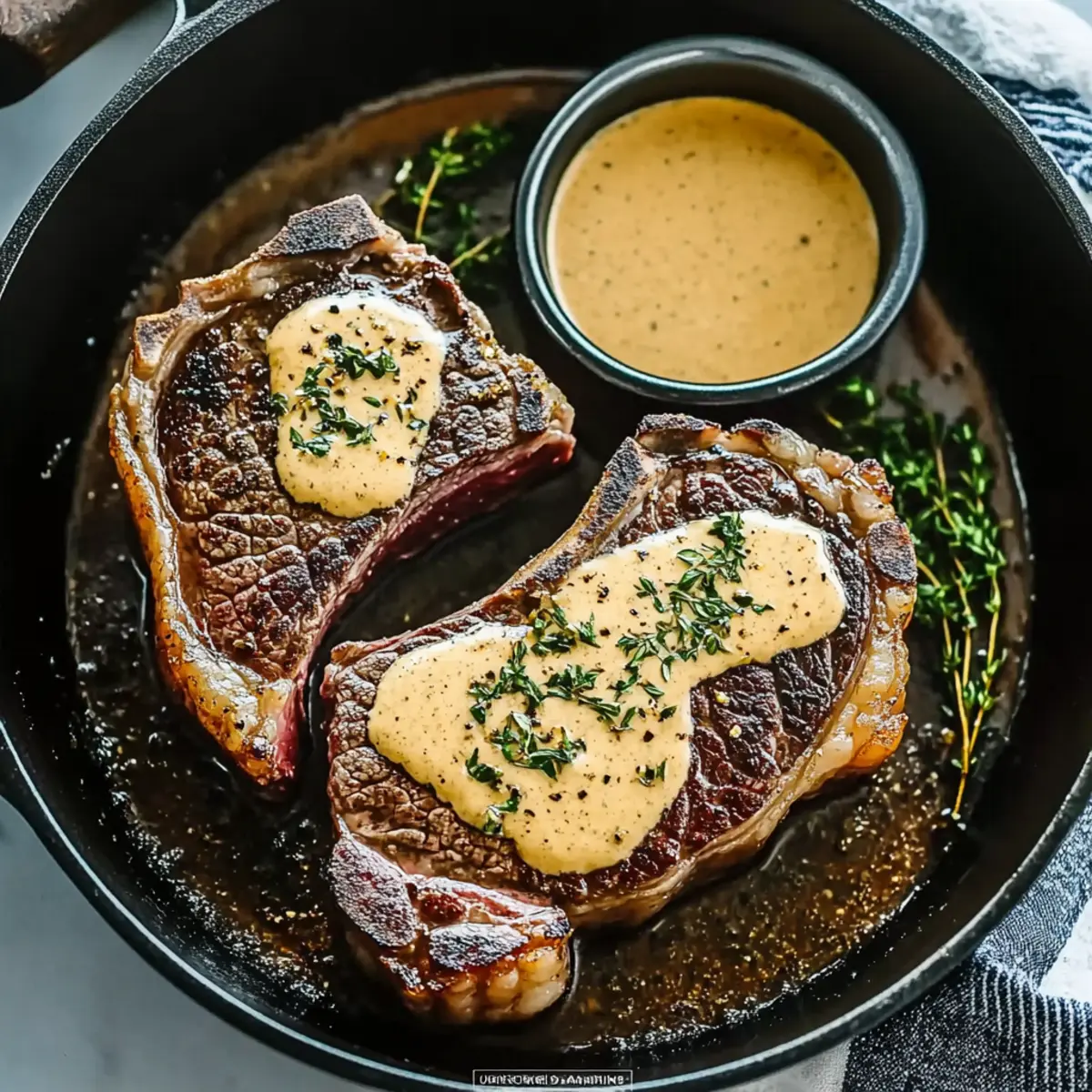 • Herb Infusion: Swap the fresh thyme and rosemary for fresh oregano or sage. These herbs will impart a whole new aromatic dimension to the steak and sauce.