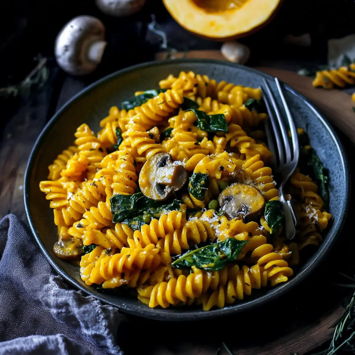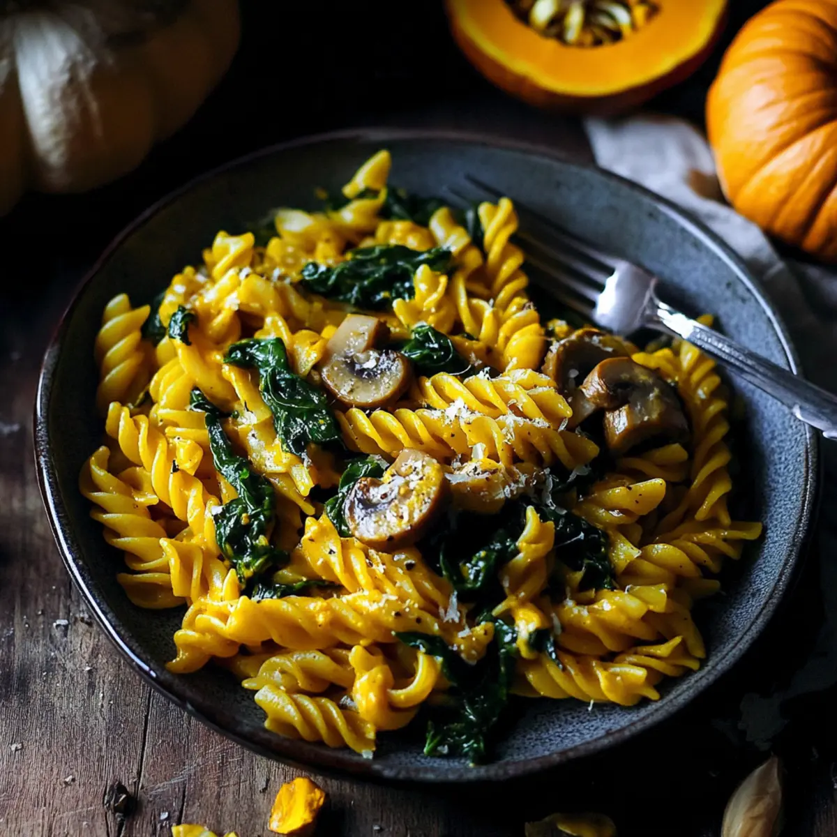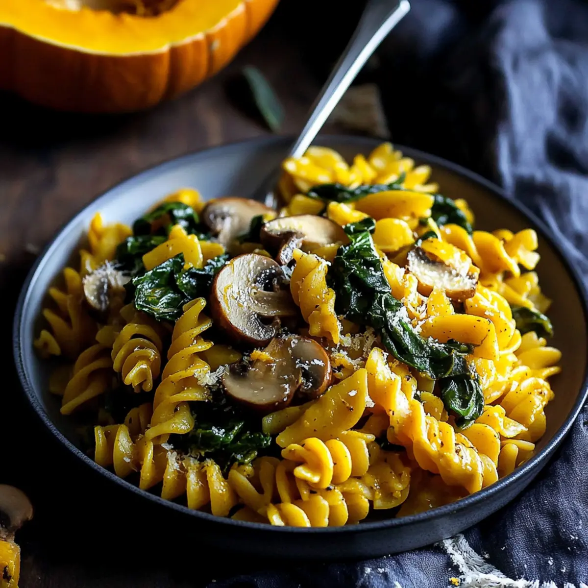 Vegan Pumpkin Pasta with Spinach and Mushrooms